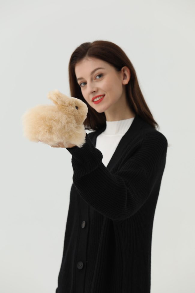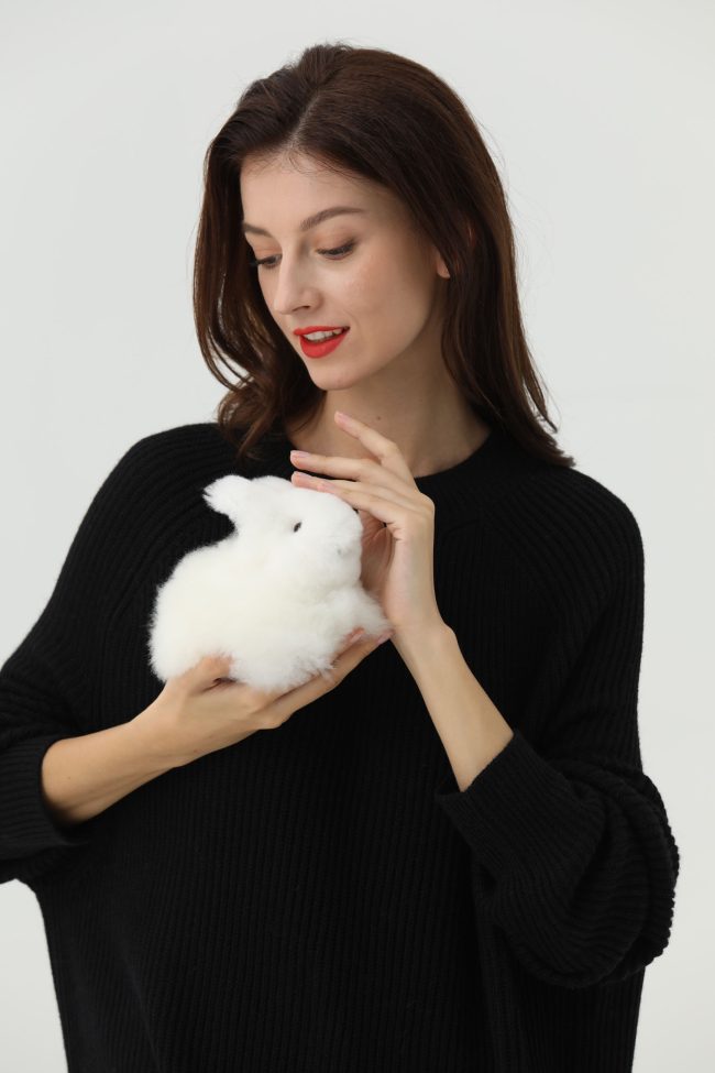 Soft bunny figure, hand-crafted with 100% alpaca huacaya fur by a lovely family of artisans in Peru.
