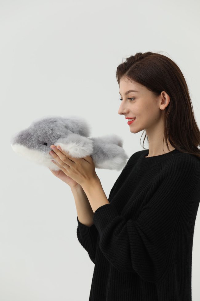 Sweet and calming dolphin figure, hand-crafted with 100% alpaca huacaya fur by a lovely family of artisans in Peru.