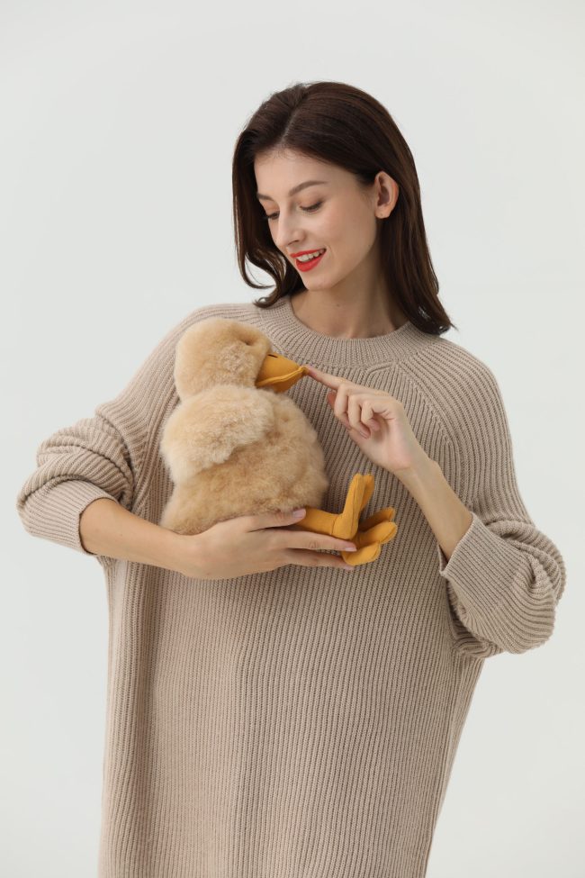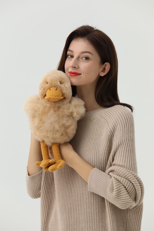 Beautiful duckling figure will make you smile every day. Hand-crafted with 100% alpaca huacaya fur by a lovely family of artisans in Peru.