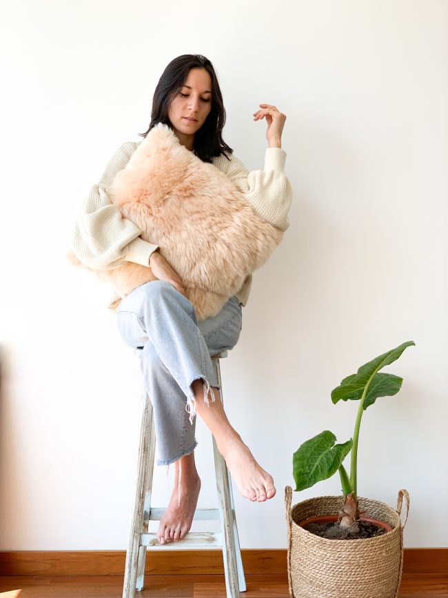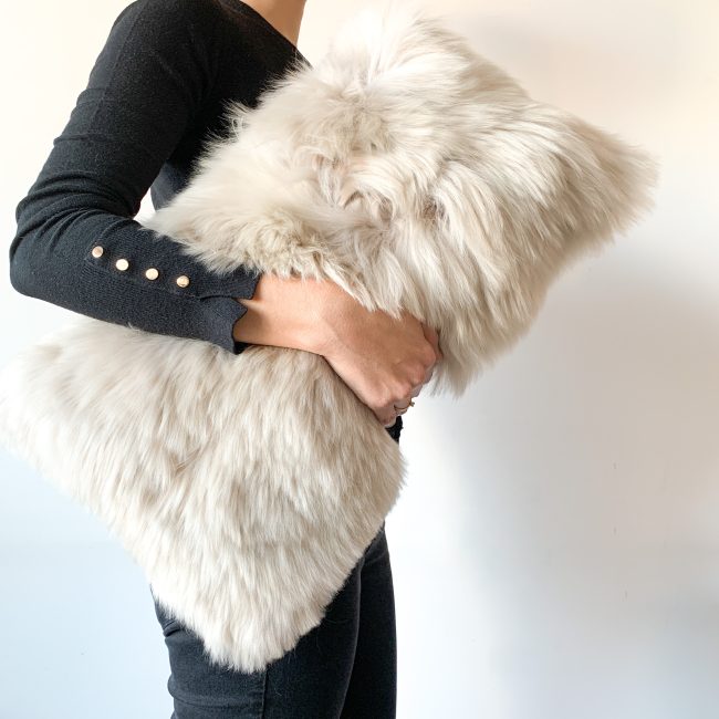 Soft and smooth suri fur cushion cover, perfect for decorating your living room or/and master room with a luxurious touch. The front side is made of 100% alpaca suri fur and the posterior side is made of fabric. Hand-crafted by artisans in Peru.