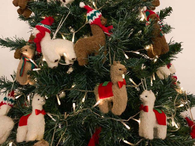 Decorate your Christmas Tree with a different yet adorable touch with these alpaca huacaya figures. The pack consists in 3, 6, 12, 24 and 48 units of alpacas wearing different Christmas accessories such as scarfs, mantles, chullos and bowties.