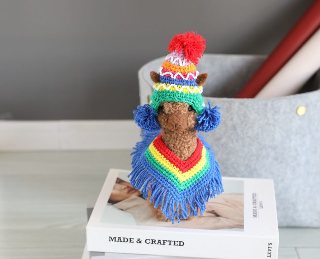 Beautiful needle felted alpaca huacaya figure, hand-crafted with 100% baby alpaca wool by proud female artisans in Peru. Additional accessories: scarfs, mantles, ponchos and chullos.